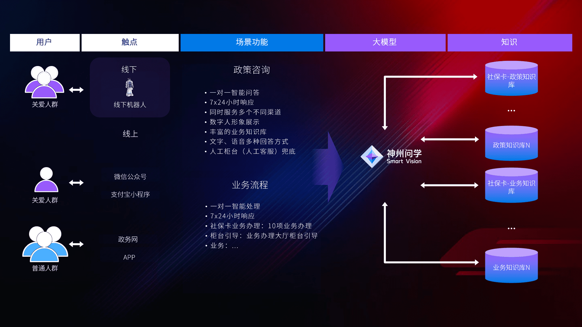 在服务大厅部署客服机器人,,,在线上应用和小程序配置客服数字人,,,,724小时为群众解答常规问题,,客服机器人无法处理的,,,转现场人工处理。。
